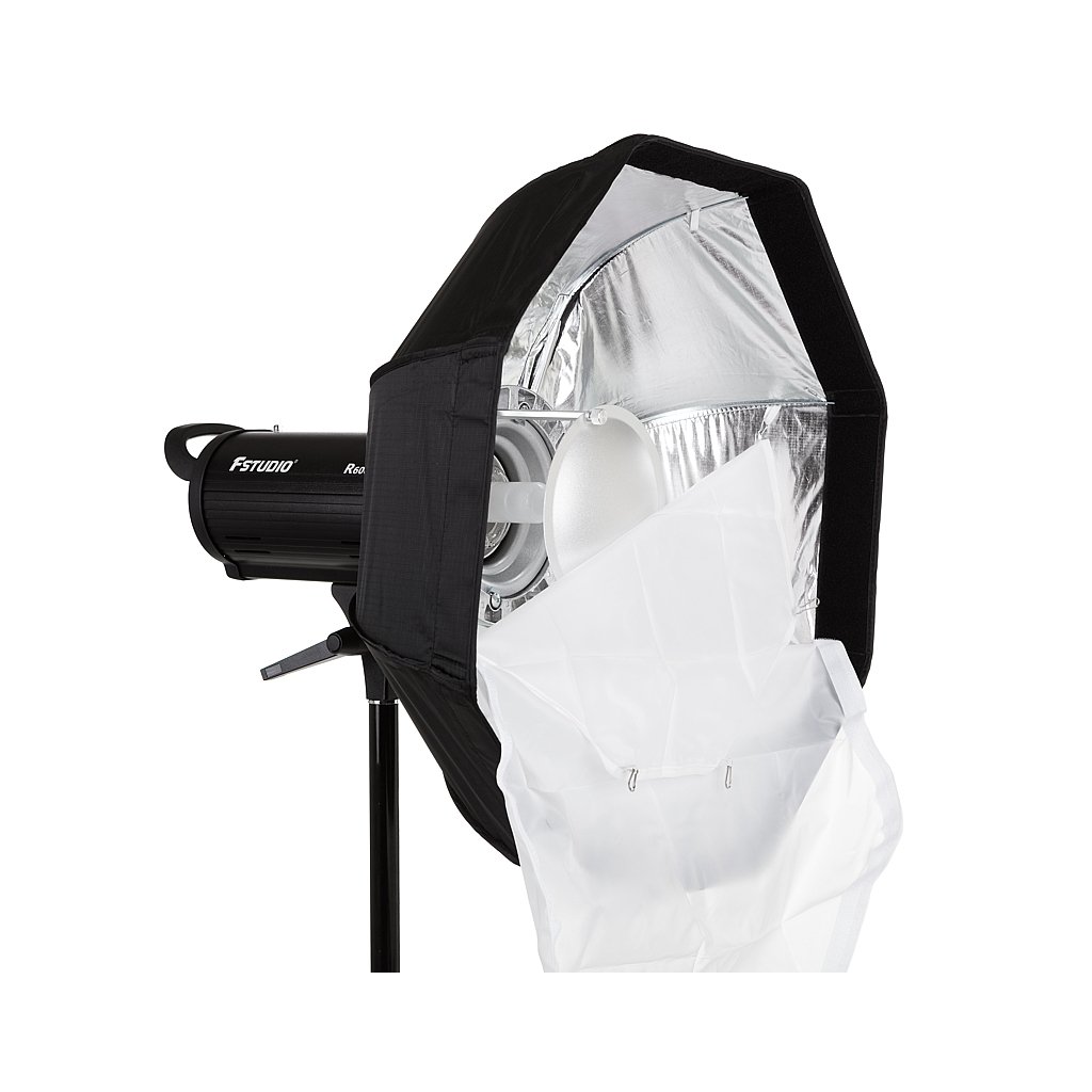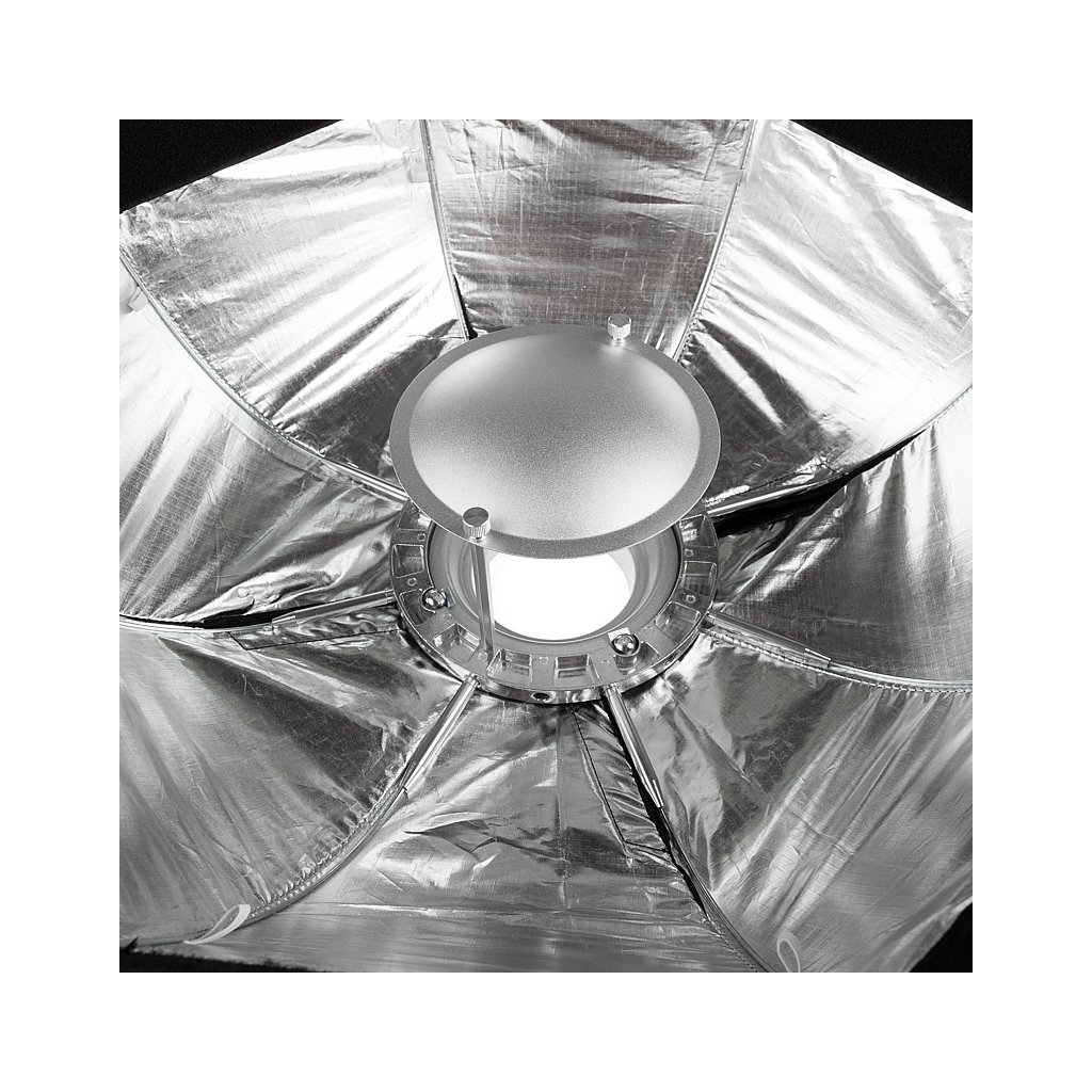 Bez vnitřního deflektoru a s oběma difuzními plochami jej lze používat jako klasický softbox s měkkým rozptylem světla. Po sejmutí difuzorů a nasazení deflektoru docílíte efektu podobného klasickému beauty dishi – kontrastního světla s jemnými přechody stínů. Kombinací difuzorů, deflektoru a přiložené voštiny (3×3 cm) můžete přesně tvarovat světlo podle potřeby.