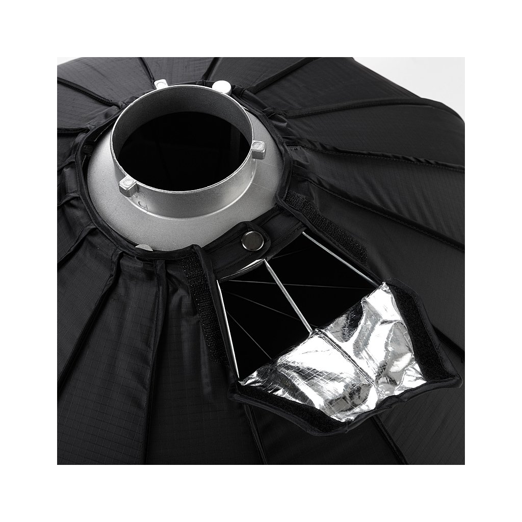 DeepBox Vám poskytne, díky své hloubce, velice zajímavé a kontrastní světlo oproti klasickým softboxům. Hodí se především pro fashion, glamour a portrétní fotografii. Rozptyl světla lze regulovat pomocí voštiny na suchý zip, která je součástí balení. Softbox obsahuje dvě difuzní plochy, z nichž vnitřní má zesílený střed pro rovnoměrné rozložení světla. Díky deštníkové konstrukci je velmi snadno a rychle sestavitelný. DeepBox je osazen vyměnitelným bajonetem Bowens otočným o 360°. Dodáváme jej s voštinou (velikost oka 4×4 cm) a praktickou transportní taškou pro snadné přenášení.