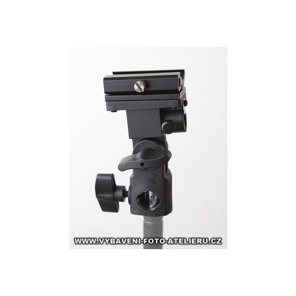 Adaptér umožňující použití systémového blesku v kombinaci se studiovým stativem. Systémový blesk se nasazuje do sáněk na horní straně adaptéru, které jsou šířkově nastavitelné. Ve střední části adaptéru je otvor pro nasazení deštníku který lze aretovat šroubem. Sáňky a závity jsou kovové.