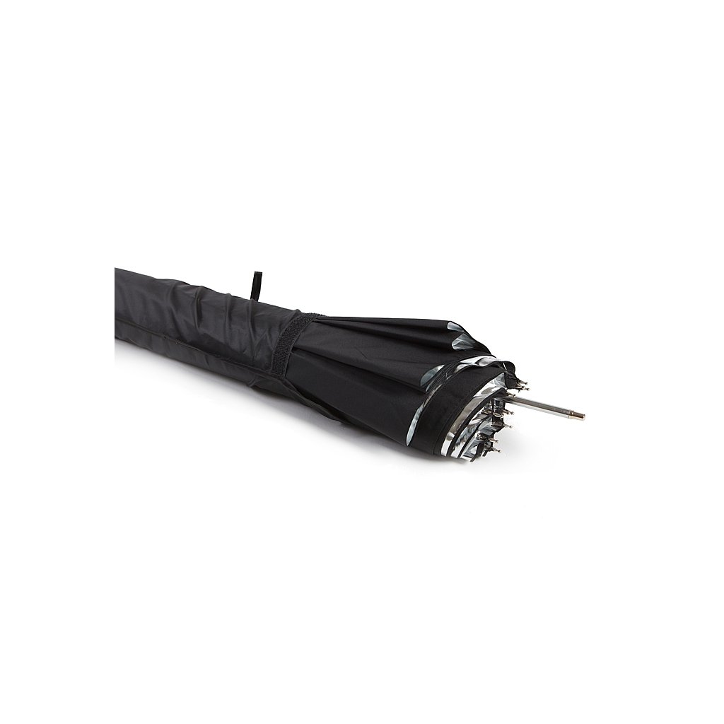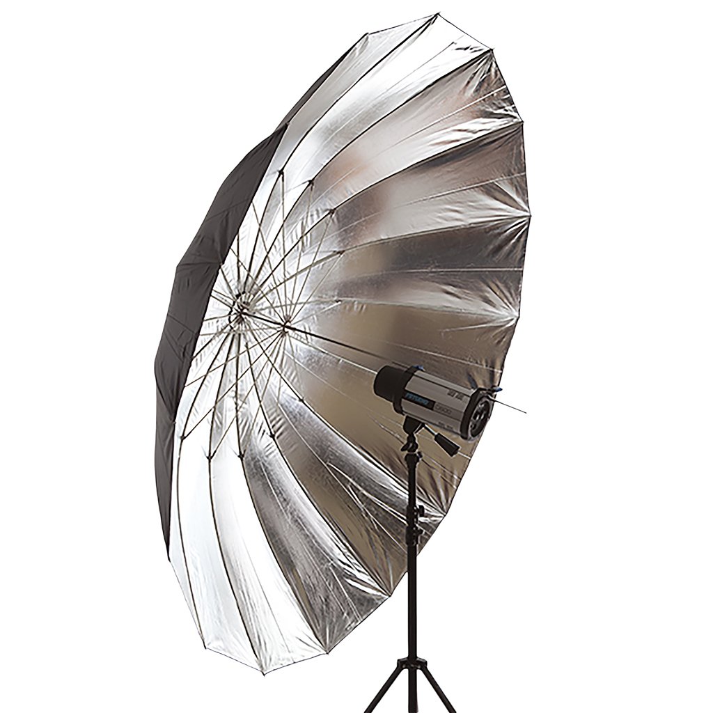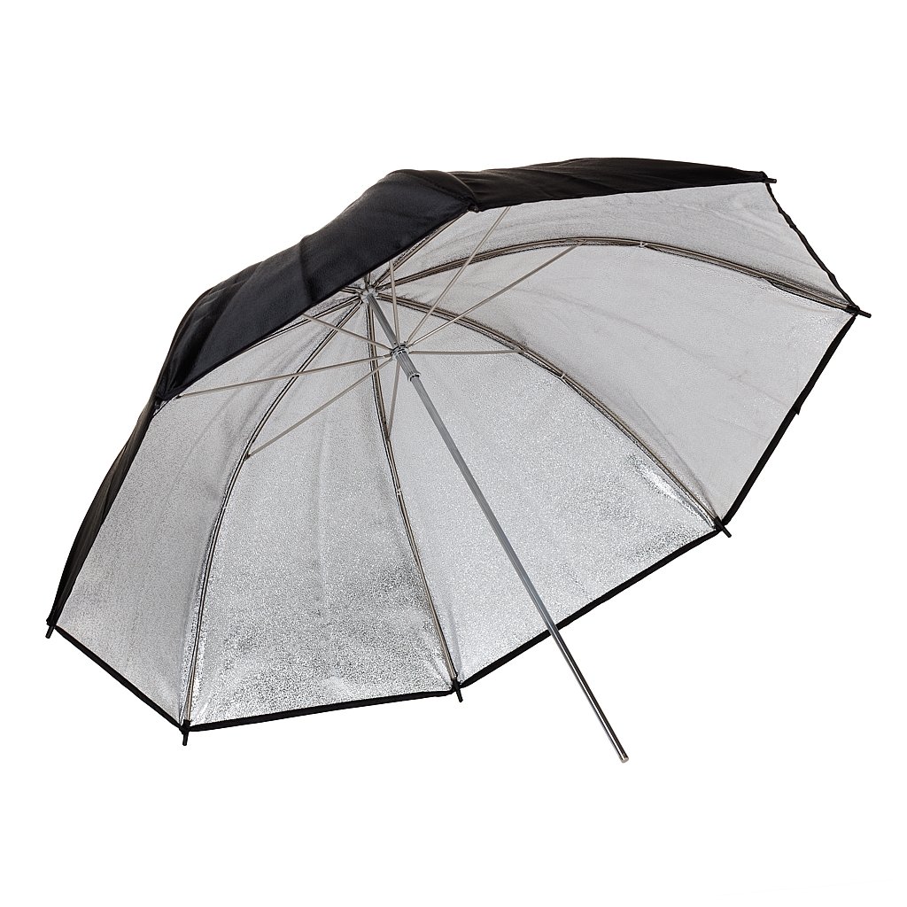 Stříbrný odrazný deštník je klasický světelný modifikátor, který poskytuje zvýšený a kontrastní odraz světla díky reflexní stříbrné vnitřní ploše. Tento typ deštníku vrací světlo zpět směrem k objektu s větší intenzitou a kontrastem, než jakého je dosaženo u běžných bílých nebo transparentních deštníků, což z něj činí skvělou volbu pro portrétní a fashion fotografii.
