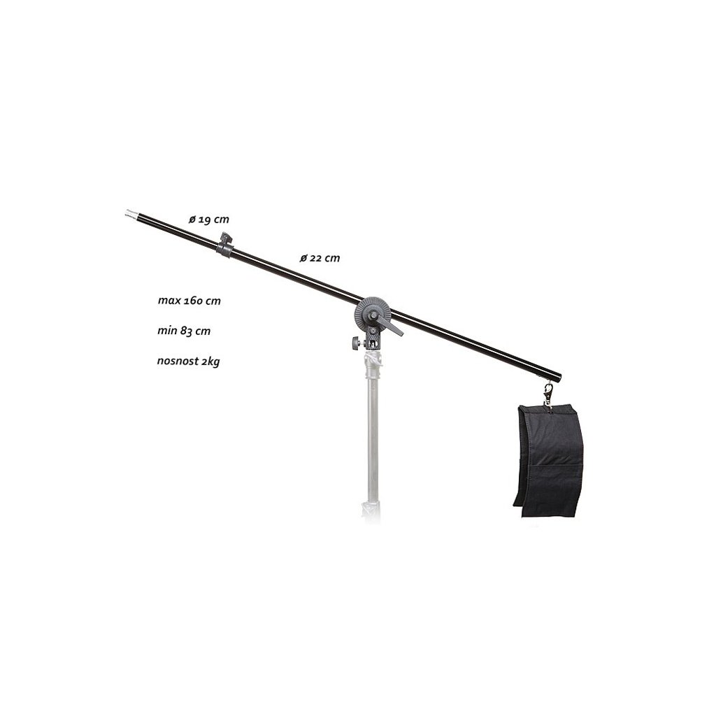 Jeho kompaktní rozměry a nízká hmotnost z něj dělají skvělého pomocníka v malém studiu i mobilních podmínkách. Vhodné pro lehká trvalá světla daylight a další lehčí příslušenství. Stativ není součástí balení, rameno pasuje na standardní čep, který má většina studiových stativů. Rameno je vybaveno vakem na protizávaží.