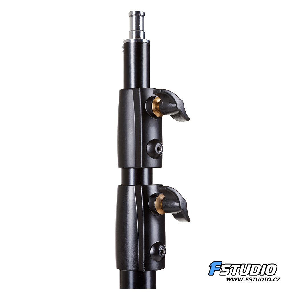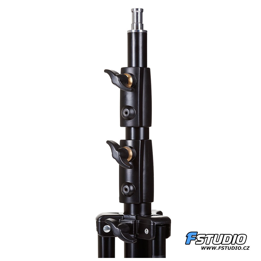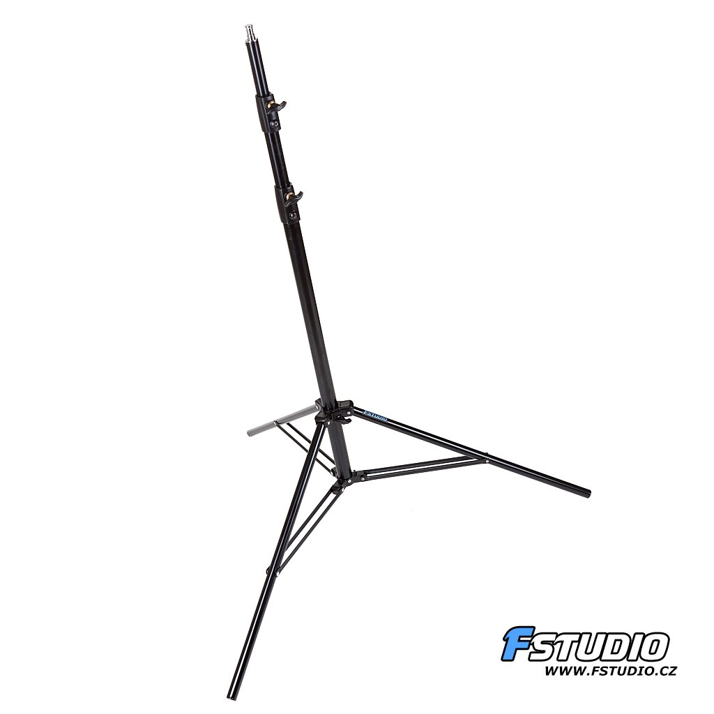 Studiový stativ Fstudio 270 cm Celokovový stativ, velmi stabilní. Je vybaven pružinovým dorazem. Vhodný pro záblesková světla i v kominaci s těžkým příslušenstvím, jako např. velké softboxy. Díky stabilitě a výšce je možné ho použít i pro konstrukce na fotopozadí.