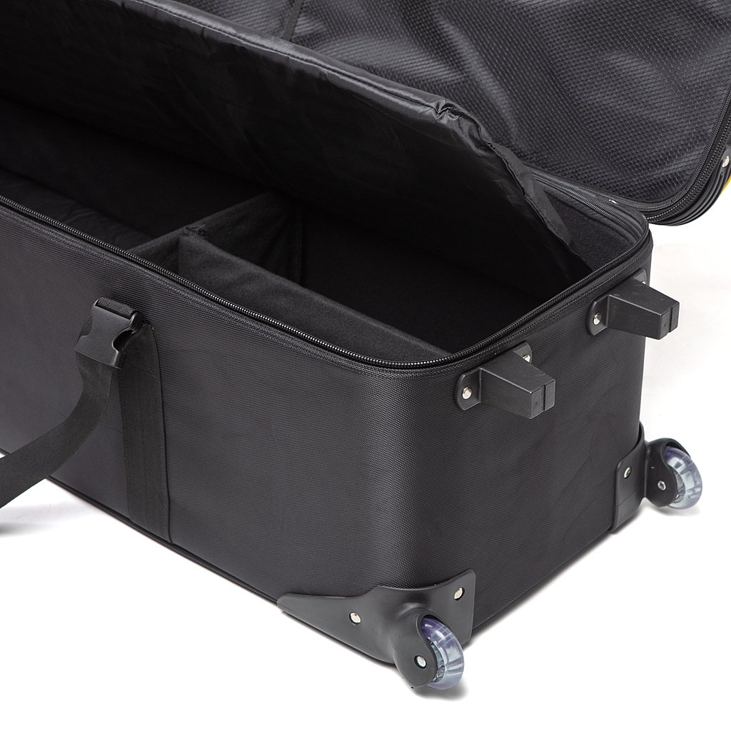 Taška na světla s kolečky – 99×33×28 cm je praktický a robustní přepravní obal navržený pro bezpečný transport a snadné uskladnění studiových světel a drobného příslušenství. Díky integrovaným kolečkům a pevnému držadlu ji snadno přesuneš i se zátěží bez zbytečné námahy.